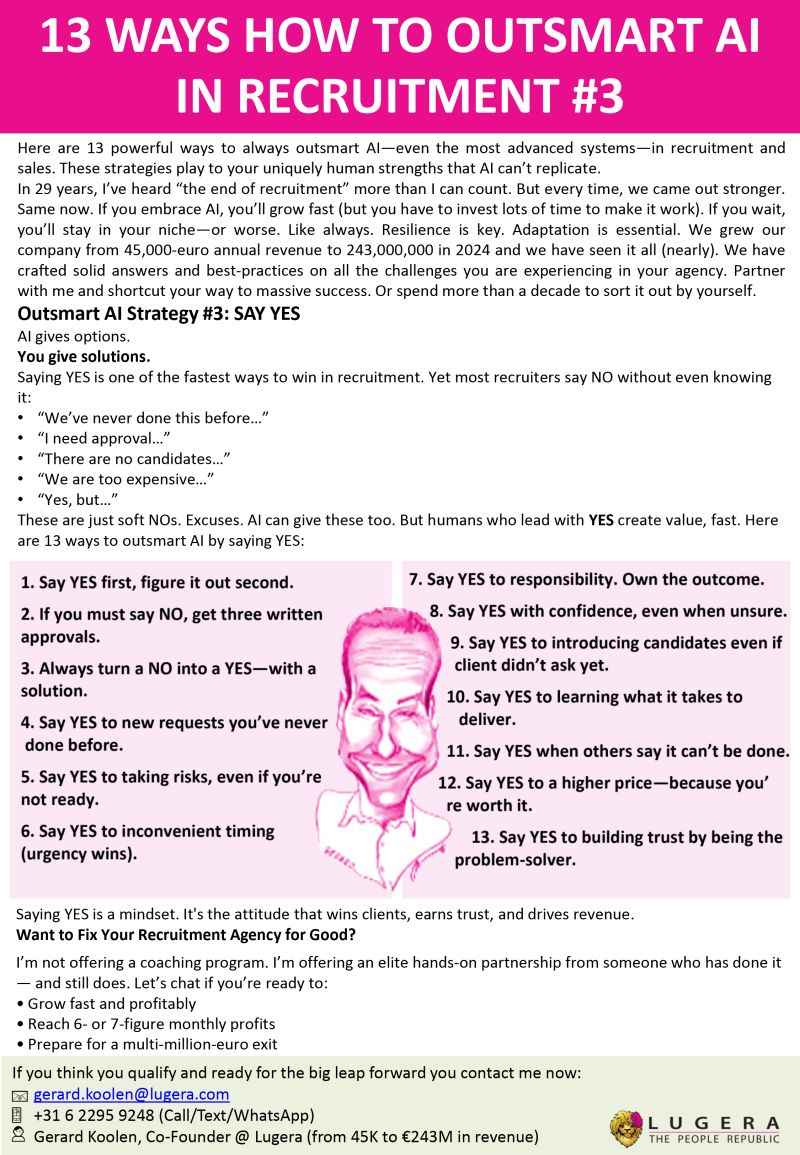 AI gives answers. You give solutions. And clients don’t want your problems—they want their problems fixed. In our agency, we follow 3 simple rules Always say YES NO needs 3…